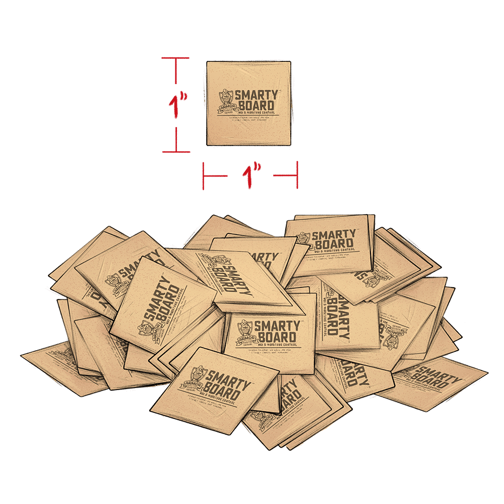 Rust and moisture are a metal part’s worst enemies—ARMOR SMARTY Board™ is a single solution that offers double protection against both. This dual-action rust prevention product not only blocks corrosion but also adsorbs moisture, helping to keep metal parts dry and protected.